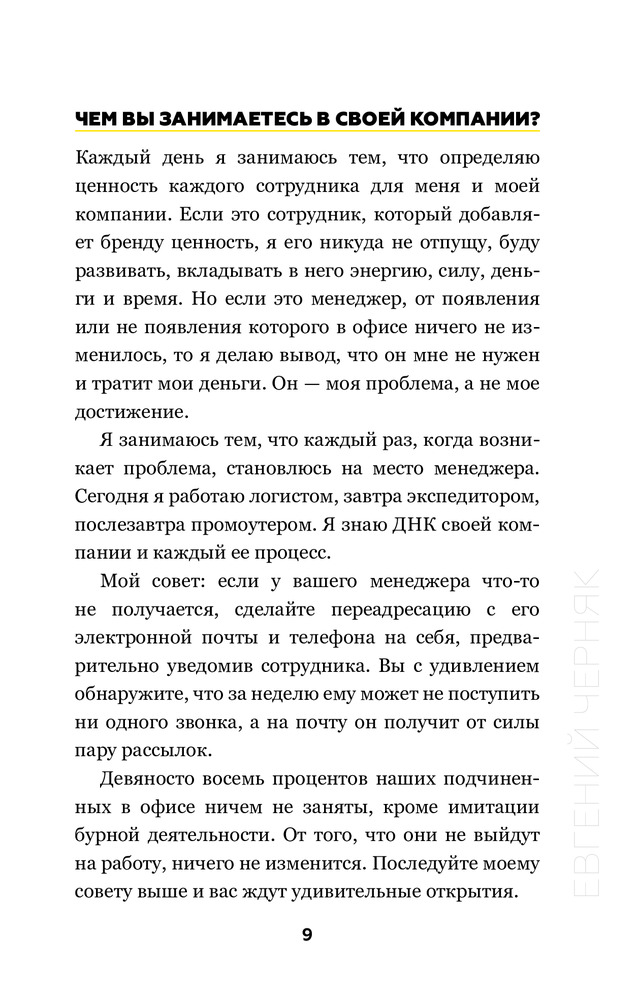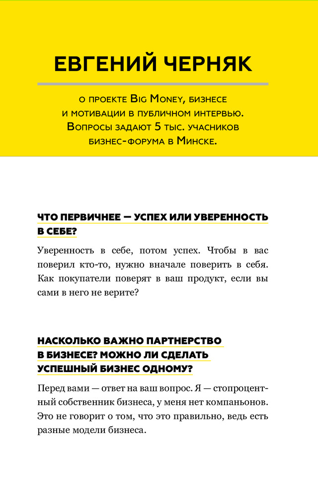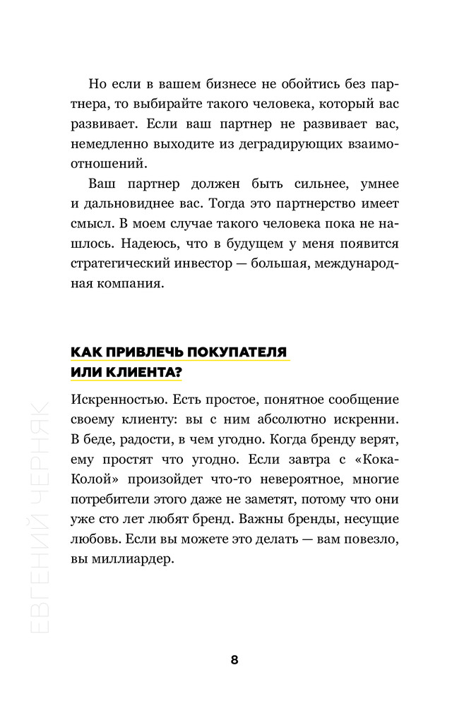 Принципы первых. Откровенно о бизнесе и жизни успешных предпринимателейВ данный момент этот товар отсутствует в продаже. Возможно, у нас найдется аналогичный или похожий товар здесь. Десять самых успешных предпринимателей СНГ делятся опытом создания сильнейших компаний в своей сфере. Автор, Евгений Черняк — бизнесмен, глава наблюдательного совета международного холдинга Global Spirits, ведущий YouTube-канала о бизнесе «Big Money». |