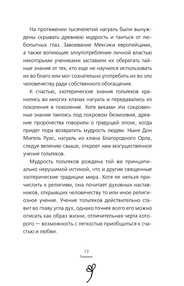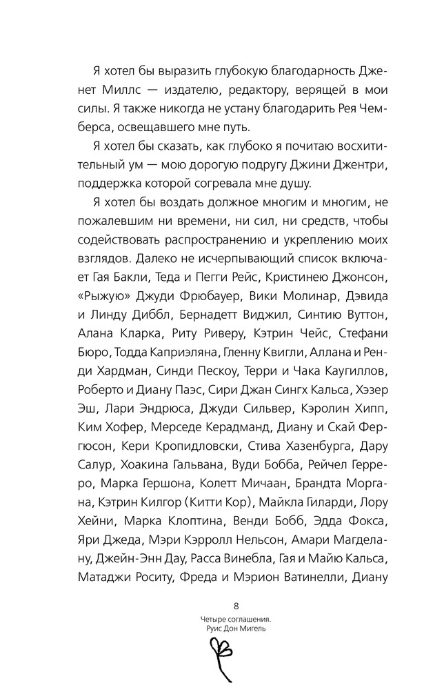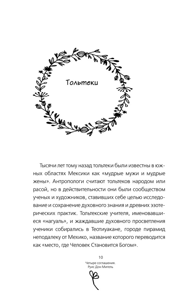 Четыре соглашения. Тольтекская книга мудростиВ данный момент этот товар отсутствует в продаже. Возможно, у нас найдется аналогичный или похожий товар здесь. Серия: Дзен-книга для души Дон Мигель Руис — известный духовный учитель и автор мировых бестселлеров, посвящающих в тайны тольтекской мудрости. Книги автора были проданы тиражом более 10 млн экземпляров в США и изданы на 40 языках по всему миру. Руис объединил древнюю мудрость с логикой разума, чтобы создать новый путь для стремящихся к истине. Он раскрывает источники ограничивающих убеждений, которые лишают нас радости и создают ненужные страдания. Книга, которую вы держите в руках, впервые была опубликована в 1997 году и около 10 лет была бестселлером The New York Times. В ней вам даны четыре соглашения: никогда не грешите словом, не принимайте ничего на свой счет, не стройте необоснованных предположений, делайте все в полную меру своих сил и способностей. Учение тольтеков ставит во главу угла особое состояние духа, позволяющее с легкостью приобщиться к счастью и любви. Приняв этот новый кодекс поведения, вы сможете по-настоящему изменить свою жизнь и достичь истинной свободы —— свободы быть собой. И помните: мы здесь для того, чтобы жить, быть счастливыми и любить. |