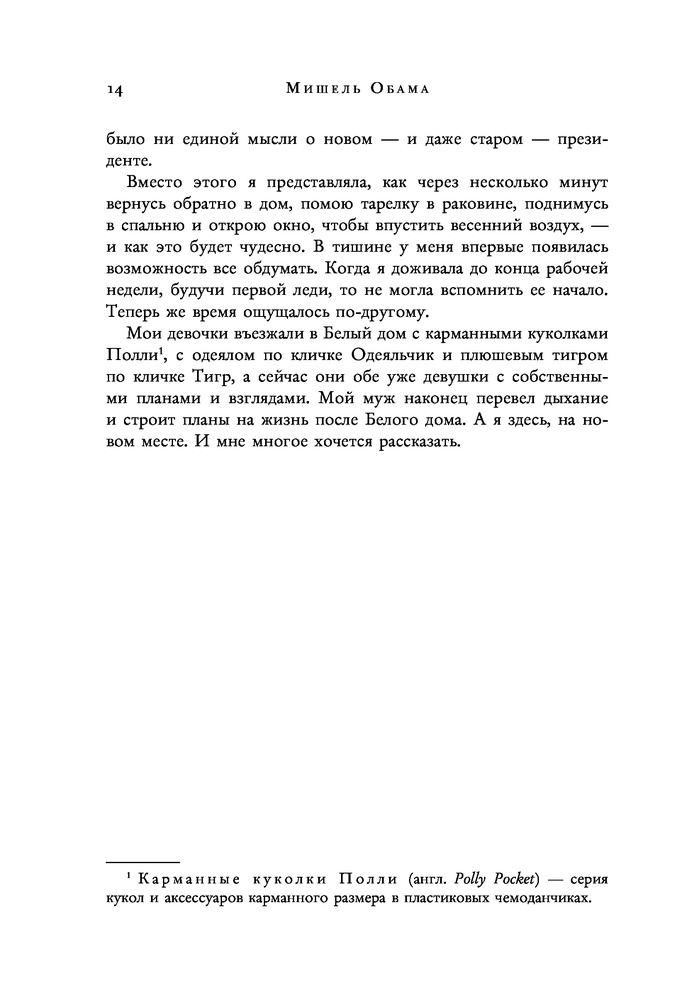 Эта книга стала моей любимой! Настолько умная и мудрая женщина Мишель! После этой книги начала следить за их семьей, даже начала читать книги Барака Обамы. Есть чему научиться у Мишель!