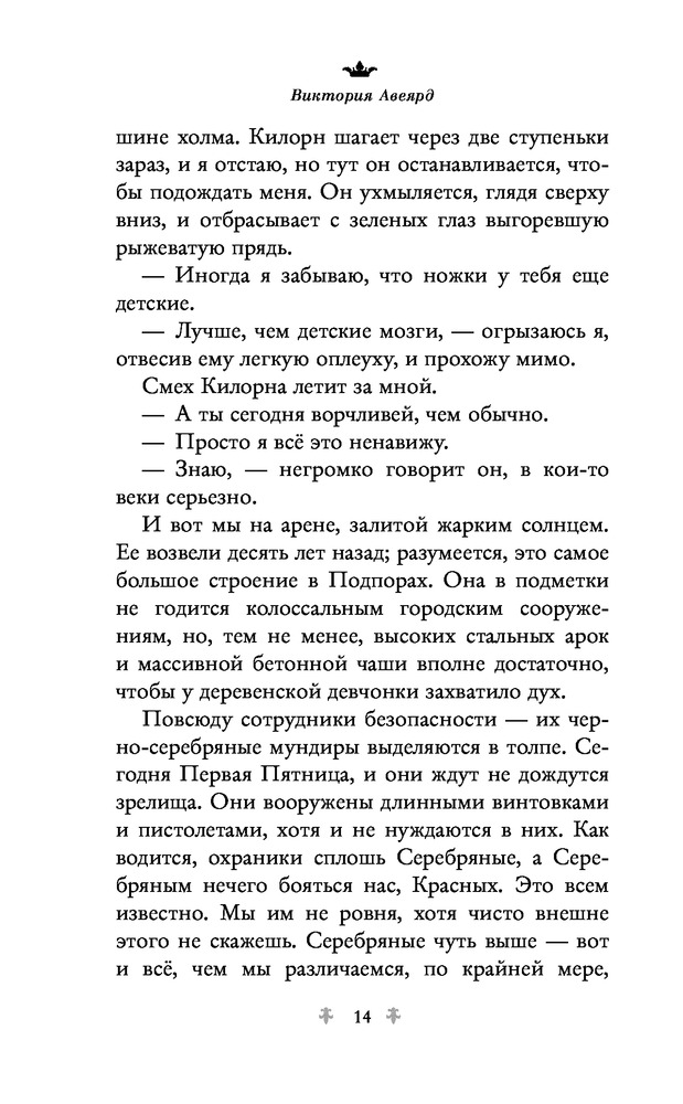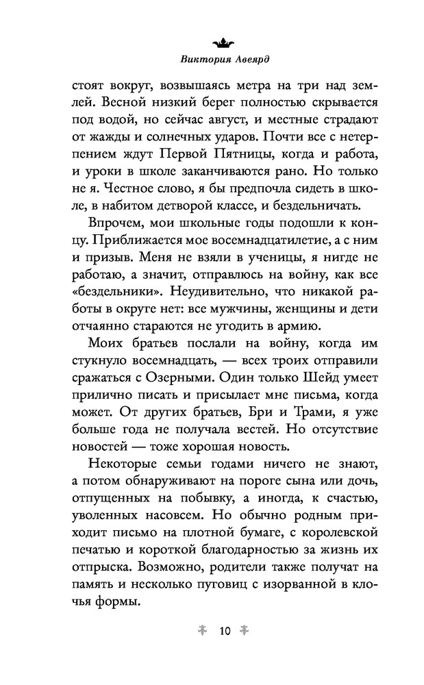 плюсы : шикарнейшая обложка , качество страниц, и в целом выполнено все хорошо . это была моя первая книга подобного жанра ... не знаю почему но собрала все части . сюжет своеобразный , весьма интересный, герой порой немного нервируют, порой наигранно , но все же интересно. весь мир Норты , алых и серебряных , все так тщательно продуманно . для любителей фэнтези и подростковых книг может понравится . лично я врятли буду перечитывать . но повторюсь что влюбилась во все 4 обложки . они теперь украшают коллекцию на книжной полке)