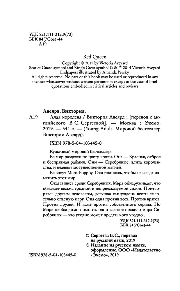 Алая королеваВ данный момент этот товар отсутствует в продаже. Возможно, у нас найдется аналогичный или похожий товар здесь. Серия: Young Adult. Мировой бестселлер Виктории Авеярд Культовый мировой бестселлер |