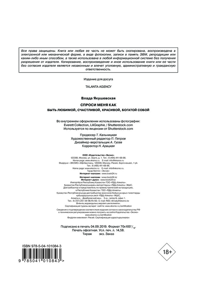 Спроси меня как. Быть любимой, счастливой, красивой, богатой собойВ данный момент этот товар отсутствует в продаже. Возможно, у нас найдется аналогичный или похожий товар здесь. Серия: Talanta agency Как стать той, кем ты мечnаешь? |