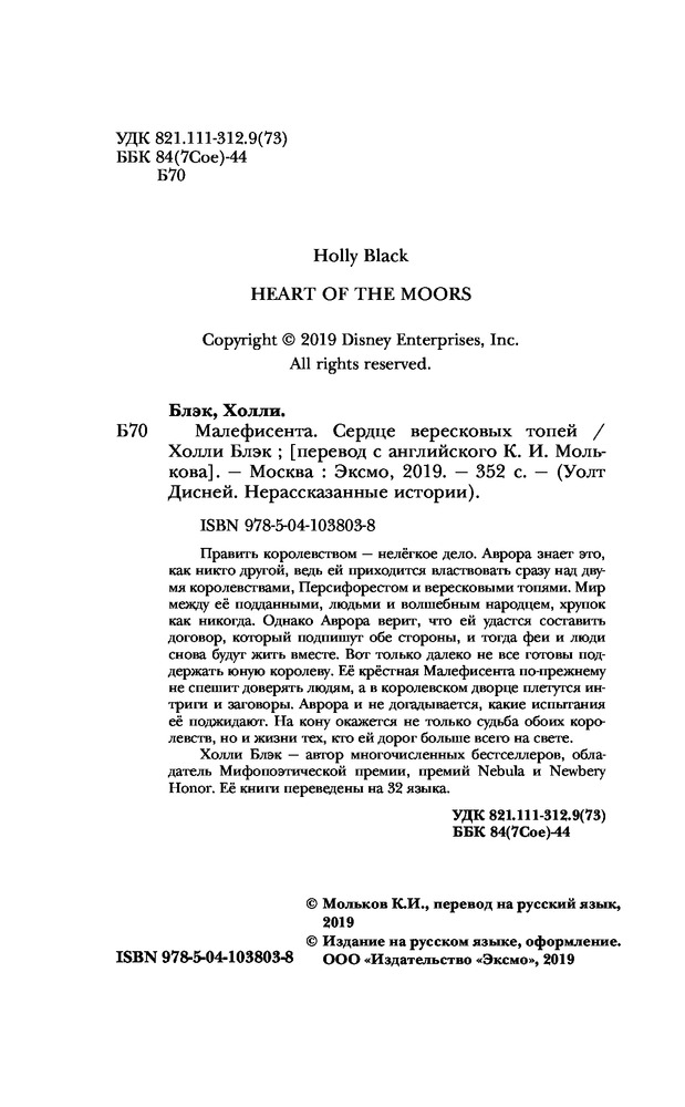 Малефисента. Сердце вересковых топейВ данный момент этот товар отсутствует в продаже. Возможно, у нас найдется аналогичный или похожий товар здесь. Серия: Детск. Уолт Дисней. Нерасcказанные истории Править королевством — нелёгкое дело. Аврора знает это как никто другой, ведь ей приходится властвовать сразу над двумя королевствами, Персифорестом и вересковыми топями. Мир между её подданными, людьми и волшебным народцем, хрупок как никогда. Однако Аврора верит, что ей удастся составить договор, который подпишут обе стороны, и тогда феи и люди снова будут жить вместе. Вот только далеко не все готовы поддержать юную королеву. Её крёстная Малефисента по-прежнему не спешит доверять людям, а в королевском дворце плетутся интриги и заговоры. Аврора и не догадывается, какие испытания её поджидают. На кону окажется не только судьба обоих королевств, но и жизни тех, кто ей дорог больше всего на свете. Холли Блэк — автор многочисленных бестселлеров, обладатель Мифопоэтической премии, премий «Nebula» и «Newbery Honor». Её книги переведены на 32 языка. |