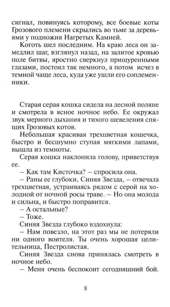 Мне предложила подруга и я посмотрела мультик, мне понравилось. Начала искать книгу и нашла тут Стать Диким и Огонь и Лёд, заказали, прочитала всё и мне очень нравится! Очень интересная книга, мои любимые коты это Огнегрив Львиногрив Буран Синяя Звезда Горчица (Песчянная Буря) Пепелюшка Папоротник Росинка Пестролистая и Щербатая.