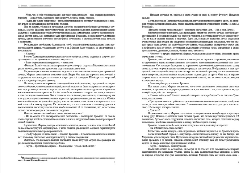 💳 Оплатить за товар можно при получении 🇰🇿 Есть бесплатная доставка по Казахстану от 1 дня 🎁 Копите бонусы с каждой покупки Серия: Шедевры детектива №1 У Тилля Беркхоффа бесследно пропадает сын Макс. Все улики свидетельствуют о том, что мальчик стал жертвой маньяка Гвидо Трамница. Преступник арестован полицией и признался в похищении и убийстве нескольких маленьких детей. Место их захоронения серийный убийца указал, однако о судьбе Макса хранит упорное молчание. Суд признает садиста невменяемым и отправляет его в строго охраняемую психиатрическую лечебницу. Следствию известно о том, что психопат вел дневник, где описывал все, что сделал с жертвами, но найти записи не удалось. Отчаявшийся отец обращается за содействием к знакомому сотруднику полиции, и тот делает ему невероятное предложение: стать пациентом этой особой клиники. Так он сможет оказаться ближе к детоубийце и заставить его признаться. Того, чем обернется эта отчаянная попытка, не ожидал никто. |