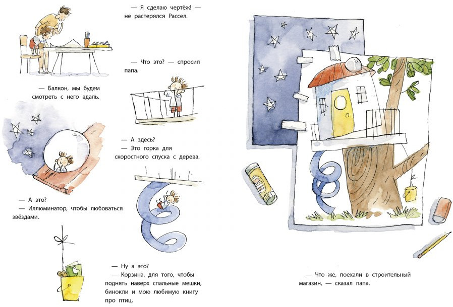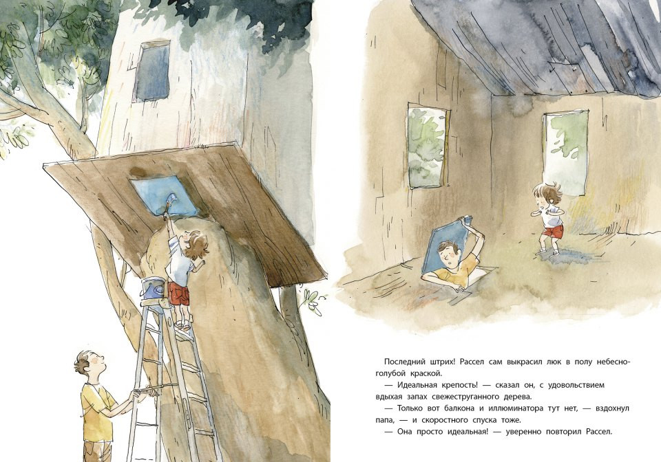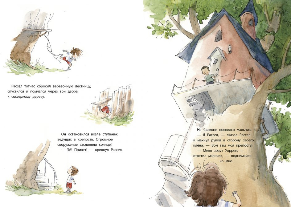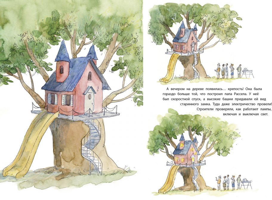 Рассел попросил папу построить крепость на дереве. И хотя папа ни разу в жизни ничего не строил и не очень-то уверен в своих силах, он берётся за дело. Крепость получается не совсем такой, как мечталось Расселу, но всё же она очень ему нравится. Только вот на следующий день неподалёку начинается строительство другой крепости... |