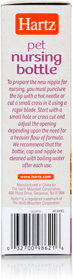 Hartz Бутылочка с соской для новорожденных котят и щенковВ данный момент этот товар отсутствует в продаже. Возможно, у нас найдется аналогичный или похожий товар здесь. Бутылочка с соской маленького размера для кормления новорожденных щенков, котят, хомячков. Отметки на бутылочке позволяют набрать нужное количество молока для каждого кормления. Перед началом эксплуатации проделайте маленькую дырочку на конце соски, с помощью раскаленной иглы или лезвия. В дальнейшем по мере необходимости отверстие можно увеличить. Соску и бутылочку кипятить после каждого кормления. |