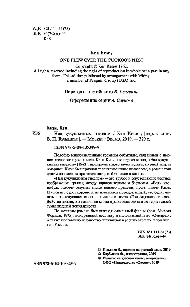Книгу еще не читала, только фильм видела ("Полет над гнездом кукушки"), но знаю, что интересная. Оформление серии вполне подарочное.