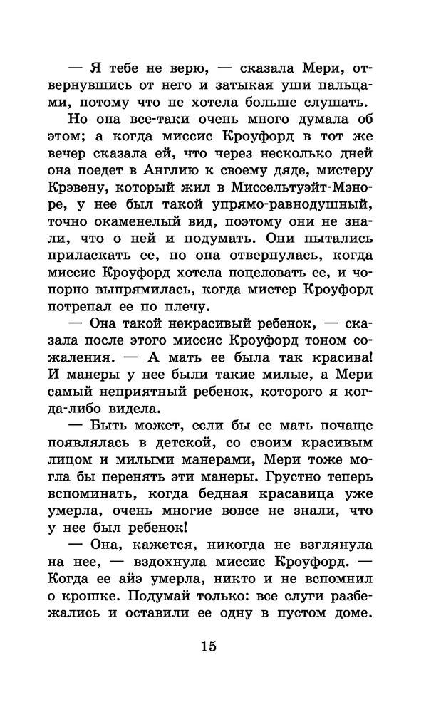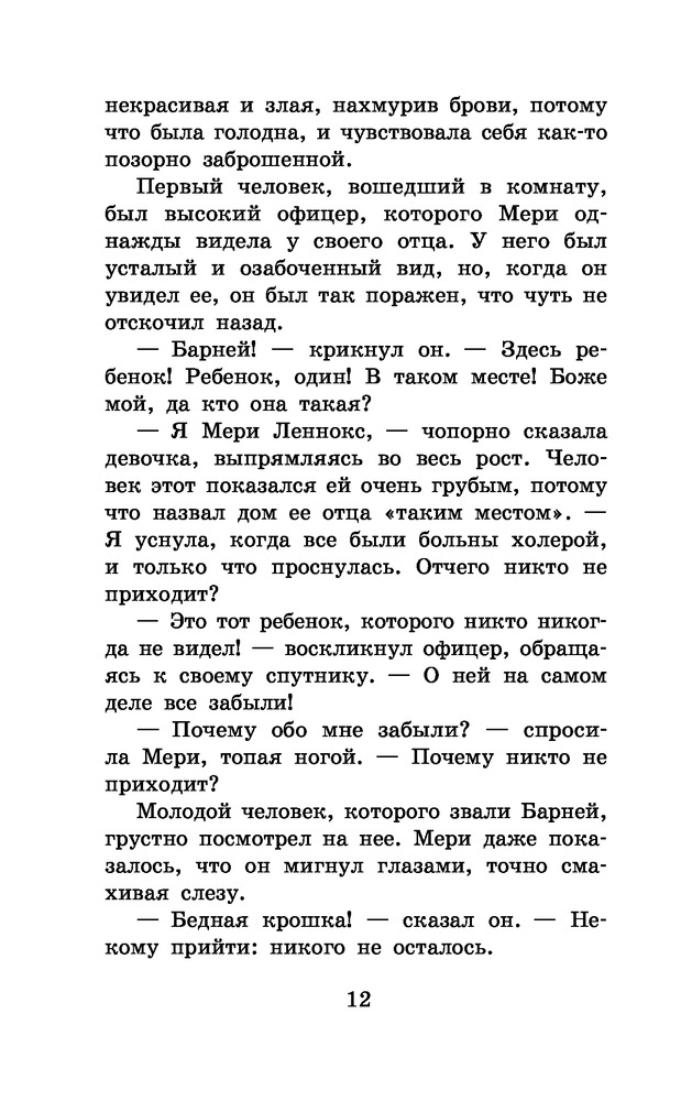 💳 Оплатить за товар можно при получении 🇰🇿 Есть бесплатная доставка по Казахстану от 1 дня 🎁 Копите бонусы с каждой покупки Серия: Школьное чтение Фрэнсис Элиза Бёрнетт (1849-1924) — англо-американская писательница и драматург. Писать Фрэнсис начала, чтобы помочь семье, попавшей в затруднительное положение. В автобиографии она рассказала, что нанималась работать на сбор винограда, чтобы оплатить почтовые расходы по рассылке рукописей в журналы. Её рассказы под разными псевдонимами стали появляться в печати. В 80-е годы девятнадцатого века романы и повести Бёрнетт уже печатаются по обе стороны океана. Среди самых известных её произведений повесть «Маленький лорд Фаунтлерой», романы «Таинственный сад», «Маленькая принцесса». «Таинственный сад» впервые опубликован полностью в 1911 году. В старинное Йоркширское поместье привозят из Индии десятилетнюю девочку Мэри Леннокс. Её родители умерли, и девочку передали на попечение дяди — мистера Арчибальда Крейвена. В дядином доме ей нужно привыкать совсем к другой жизни... Однажды молоденькая горничная рассказывает о таинственном саде, за которым раньше ухаживала миссис Крейвен, но после её смерти туда запрещено входить. Девочка решает найти его... |