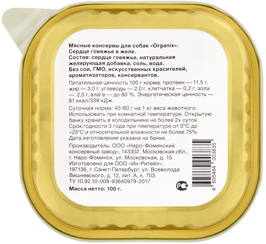 Organix Лакомство для собак «Сердце говяжье в желе, измельченные»3+1 В данный момент этот товар отсутствует в продаже. Возможно, у нас найдется аналогичный или похожий товар здесь. Условия хранения товара: температурный режим от -10 до +25°С. |