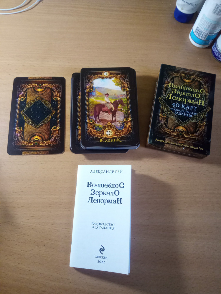 Получила свои ленорман. Очень довольна. Яркие, цветные, не тонкие, по качеству они нормальные, соответствуют цене, а то я видела вообще тонюсенькие карты, эти по лучше. Инструкция прикольная, в стихах. Нужно ее понять. Карты мне сразу открылись. Взяла в дополнение к картам таро. С ленорман впервые познакомилась, конечно с таро уэйта не сравнить. Взяла из интереса. На них хорошо делать расклад на отношения.
