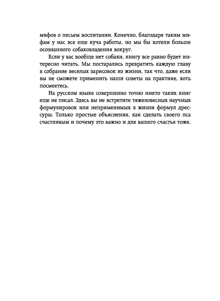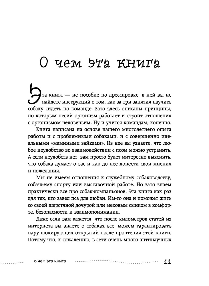 💳 Оплатить за товар можно при получении 🇰🇿 Есть бесплатная доставка по Казахстану от 1 дня 🎁 Копите бонусы с каждой покупки Серия: Домашние питомцы. Уход, здоровье, воспитание Эта книга — не пособие по дрессировке, вы не найдете в ней рекомендаций, как за три занятия научить собаку сидеть по команде. Зато в ней описаны принципы, по которым песий организм работает и строит отношения с организмом человечьим. Книга написана на основе многолетнего опыта работы авторов и с проблемными собаками, и с совершенно идеальными «мамиными зайками». Из нее вы узнаете, что любое неудобство во взаимодействии с псом можно устранить. Это не нудная инструкция к собаке, но инструмент для извлечения дополнительного удовольствия из собаководства. После прочтения вы научитесь хорошо понимать свою собаку, проявлять и распознавать любовь, и ваша совместная жизнь станет насыщеннее и веселее. |