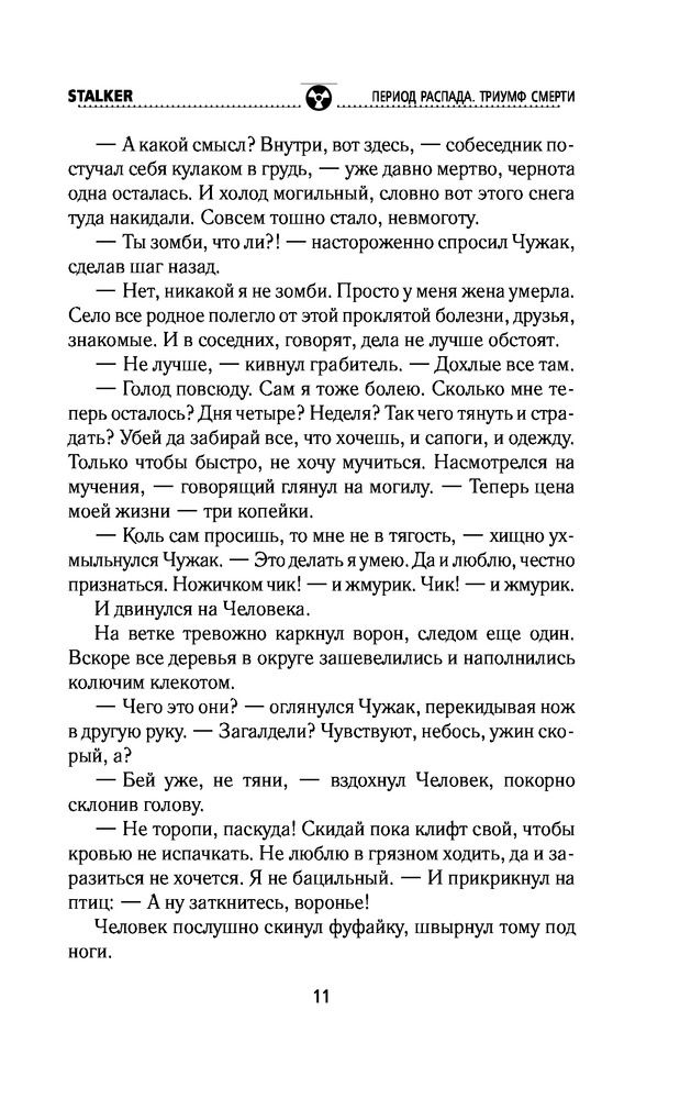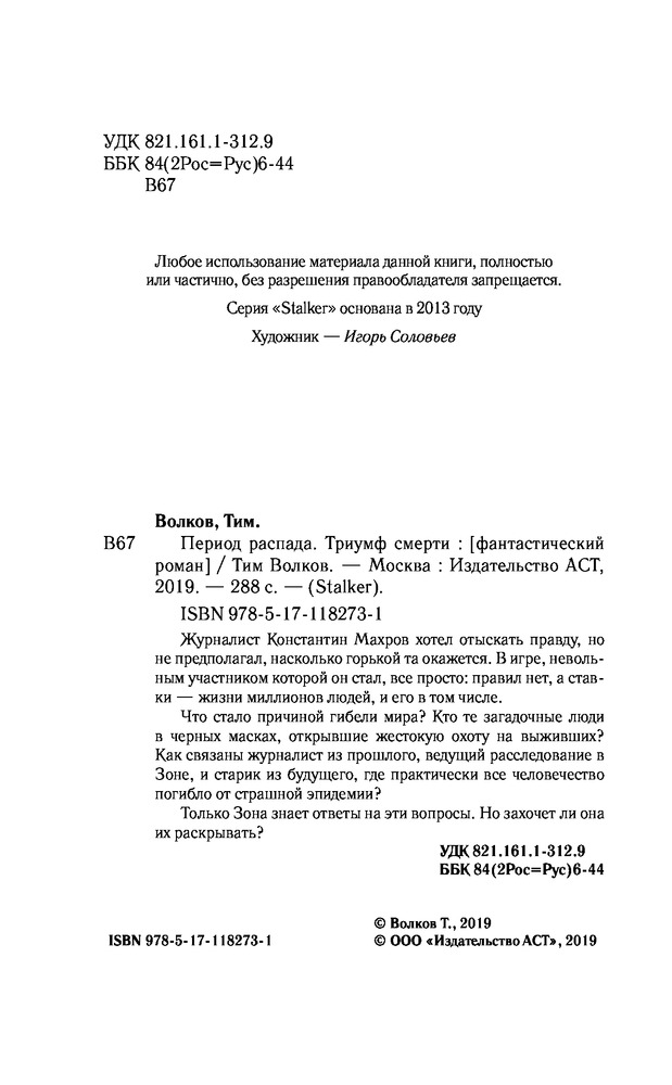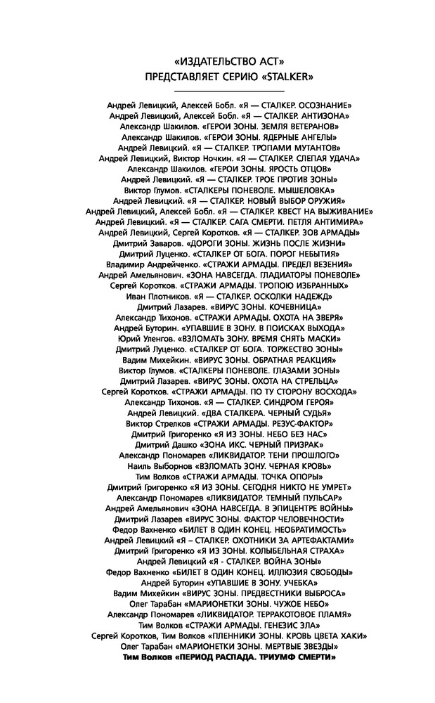 Журналист Константин Махров хотел отыскать правду, но не предполагал, насколько горькой та окажется. В игре, невольным участником которой он стал, всё просто: правил нет, а ставки — жизни миллионов людей, и его в том числе. Что стало причиной гибели мира? Кто те загадочные люди в черных масках, открывшие жестокую охоту на выживших? Как связаны журналист из прошлого, ведущий расследование в Зоне, и старик из будущего, где практически все человечество погибло от страшной эпидемии? Только Зона знает ответы на эти вопросы. Но захочет ли она их раскрывать?