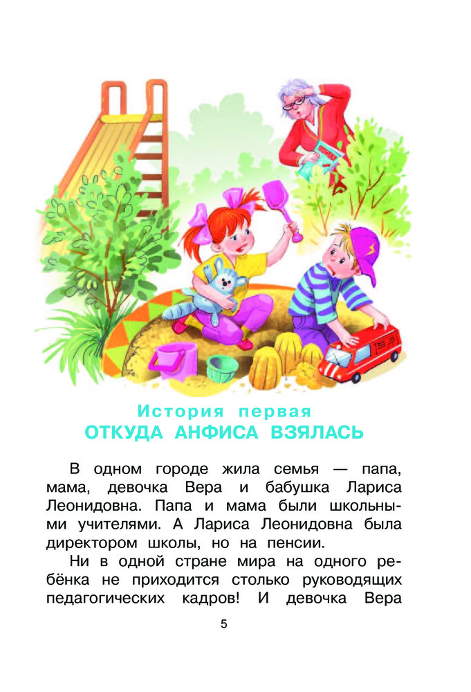 В детстве очень любила эту книгу, сейчас взяла ребенку. Истории про Веру и Анфису очень смешные, интересные, можно каждую разбирать на цитаты)) Сама книга очень качественно сделана, хороший твердый переплет, белая плотная бумага, яркие иллюстрации.