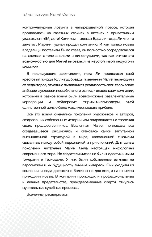 Только вчера начал читать, но уже очень интересно. Никогда не думал, что в комикс-индустрии , тоже много интриг. Думаю книга будет интересна любому фанату Марвела.