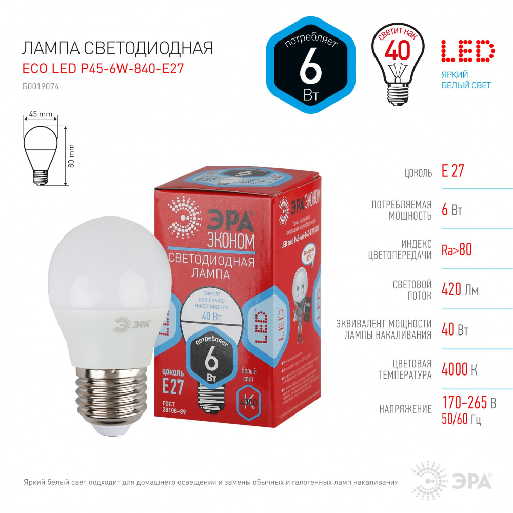 Отличная светодиодная лампочка. Взял 6 Вт, что соответствует 40 Вт (эквивалент мощности), с цоколем E27. Светимость: 4000К. Лампочка с дневным светом.