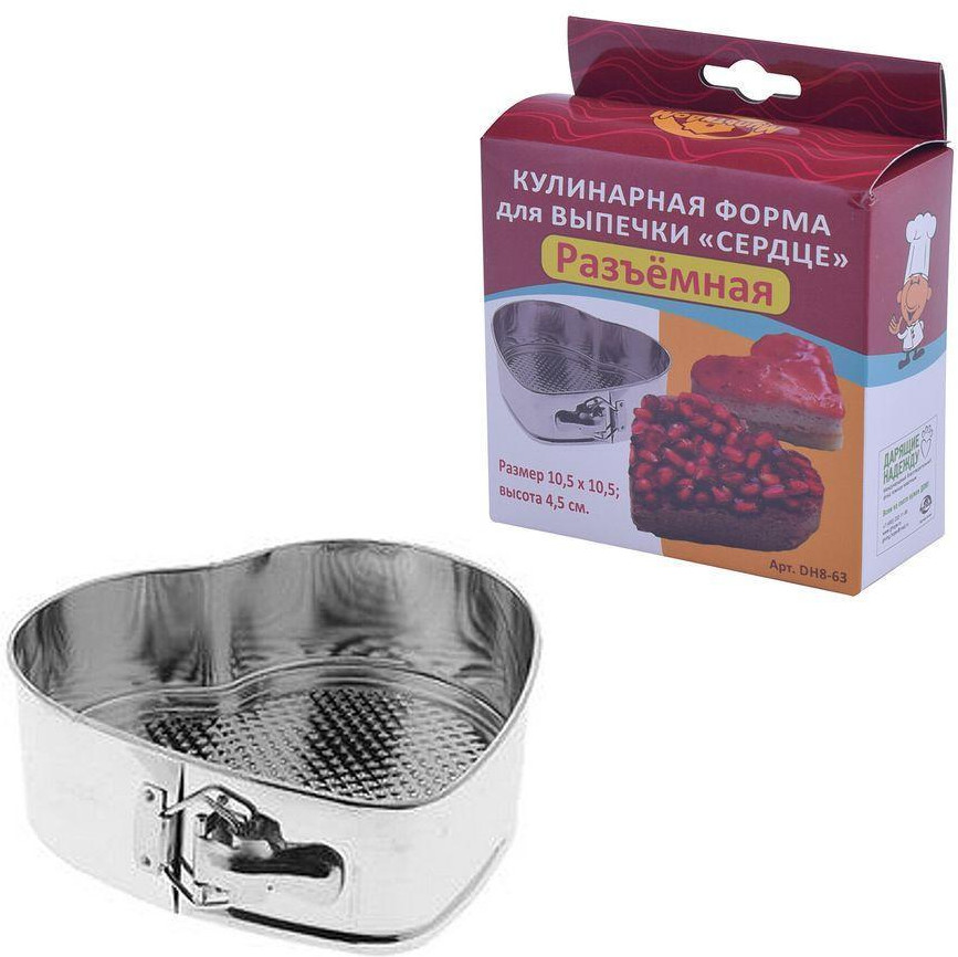 💳 Оплатить за товар можно при получении 🇰🇿 Есть бесплатная доставка по Казахстану от 1 дня 🎁 Копите бонусы с каждой покупки Металлическая форма для выпечки в виде сердца удобна для выпекания коржей, пирогов и кексов из густого и жидкого теста. Конструкция со съемным дном и раздвижным механизмом позволяет легко вынимать готовую выпечку без нарушения ее целостности. Чтобы коржи не пригорали, дополнительно используйте бумагу для выпечки. Форма подойдет для духовок всех типов, изготовлена из луженой стали. |