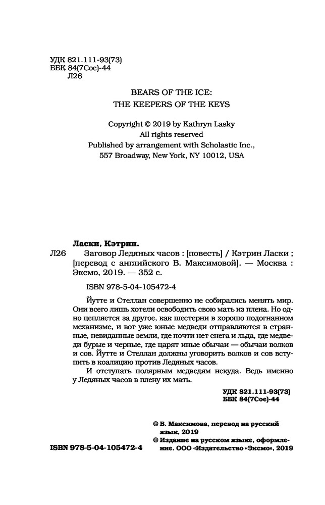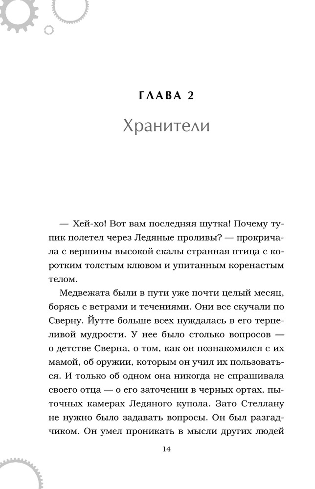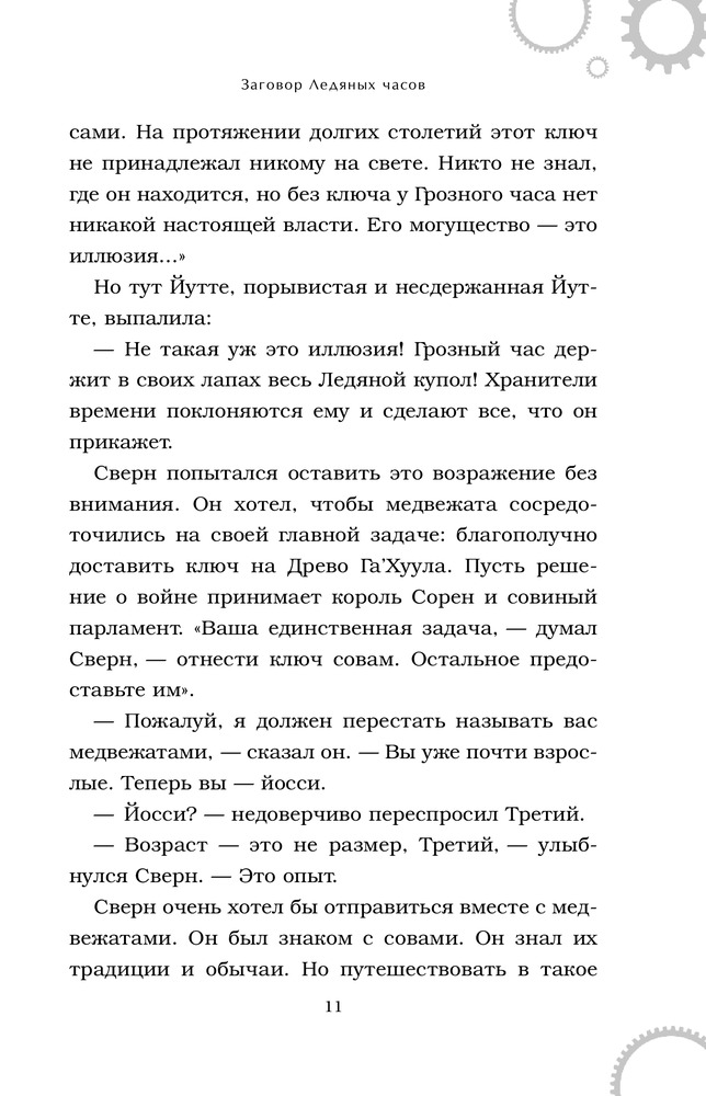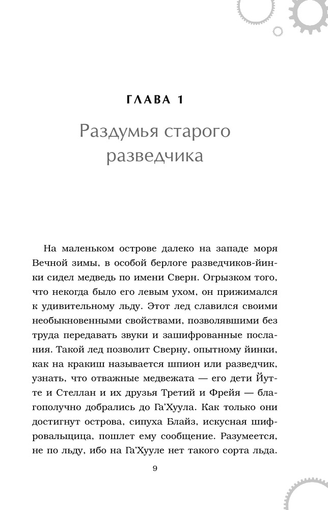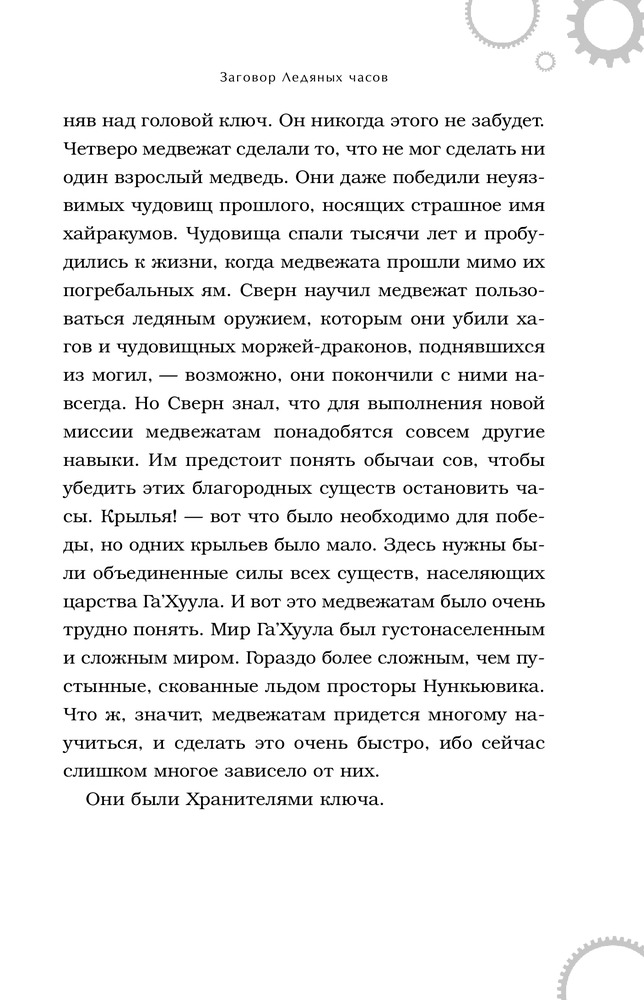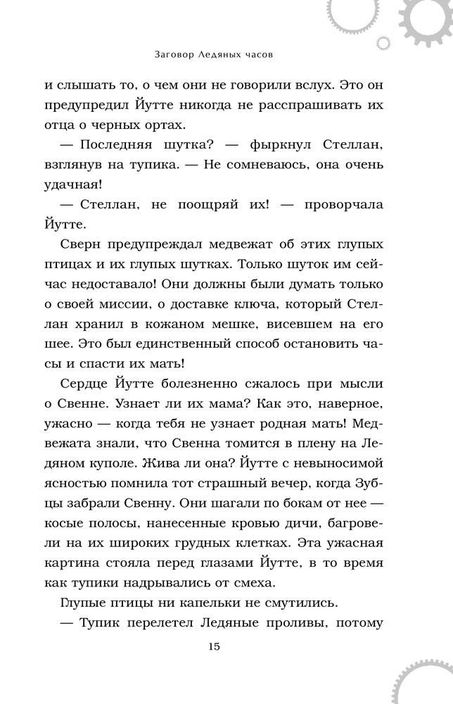 Заговор Ледяных часовВ данный момент этот товар отсутствует в продаже. Возможно, у нас найдется аналогичный или похожий товар здесь. Серия: Детская. Грозный час льда Йутте и Стеллан совершенно не собирались менять мир. Они всего лишь хотели освободить свою мать из плена. Но одно цепляется за другое, как шестерни в хорошо подогнанном механизме, и вот уже юные медведи отправляются в странные, невиданные земли, где почти нет снега и льда, где медведи бурые и черные, где царят иные обычаи — обычаи волков и сов. Йутте и Стеллан должны уговорить волков и сов вступить в коалицию против Ледяных часов. И отступать полярным медведям некуда. Ведь именно у Ледяных часов в плену их мать. |