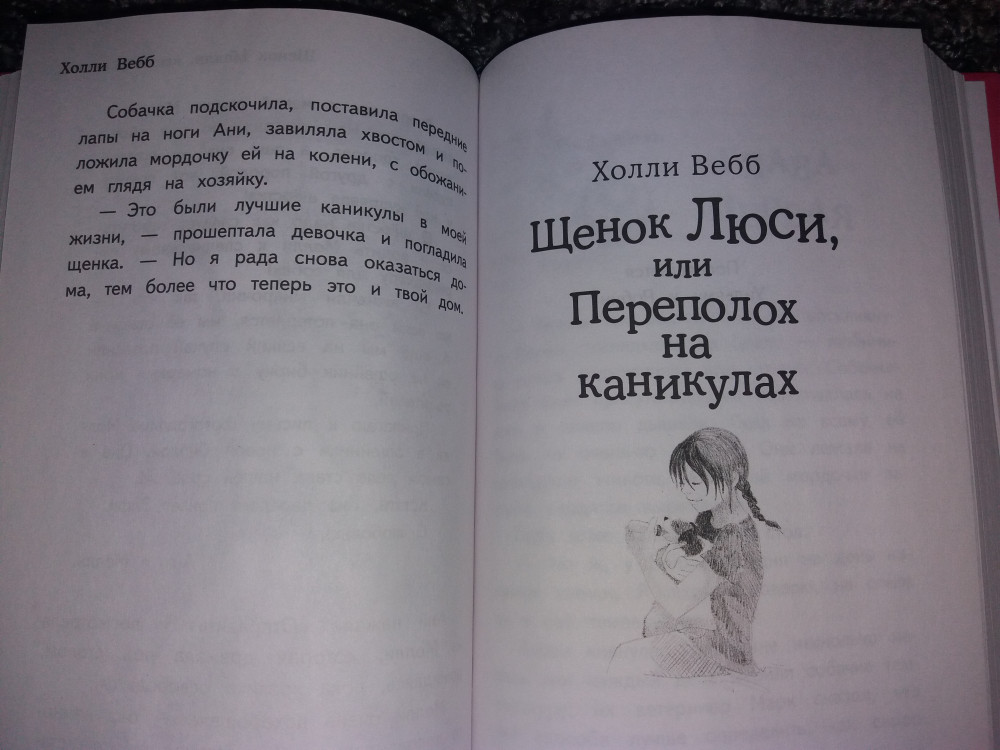 Отличная книга. Еще закажем из этой серии "Мяу! Большая книга добрый историй". Доча (10 лет) любит читать Холли Вебб. Читается легко и интересно. 4 истории в одной книге. Очень выгодная цена.
