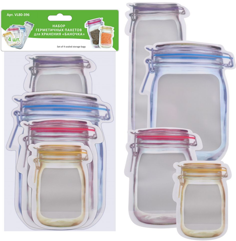 Мультидом Трейдинг Набор герметичных пакетов для хранения «Банка»-20% +21 плотные герметичность удобная застёжка маленький объём