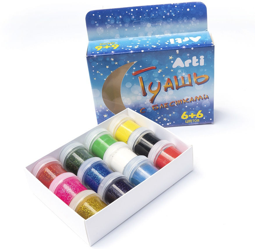 ARTI Краски гуашевые с блесткамиВ данный момент этот товар отсутствует в продаже. Возможно, у нас найдется аналогичный или похожий товар здесь. Рисовать гуашью очень удобно: она легко размывается водой, хорошо наносится на бумагу, картон, холст, ткань и фанеру, без труда удаляется с рук и одежды. При высыхании краска приобретает бархатистую матовую поверхность и совершенно безопасна при использовании. Гуашь поможет вашему ребёнку создавать красивые яркие картинки, выдумывать невероятные сюжеты и воплощать их в реальность, развивая цветовое восприятие, зрительную память, воображение, мелкую моторику пальцев, ассоциативное, аналитическое и творческое мышление. |
