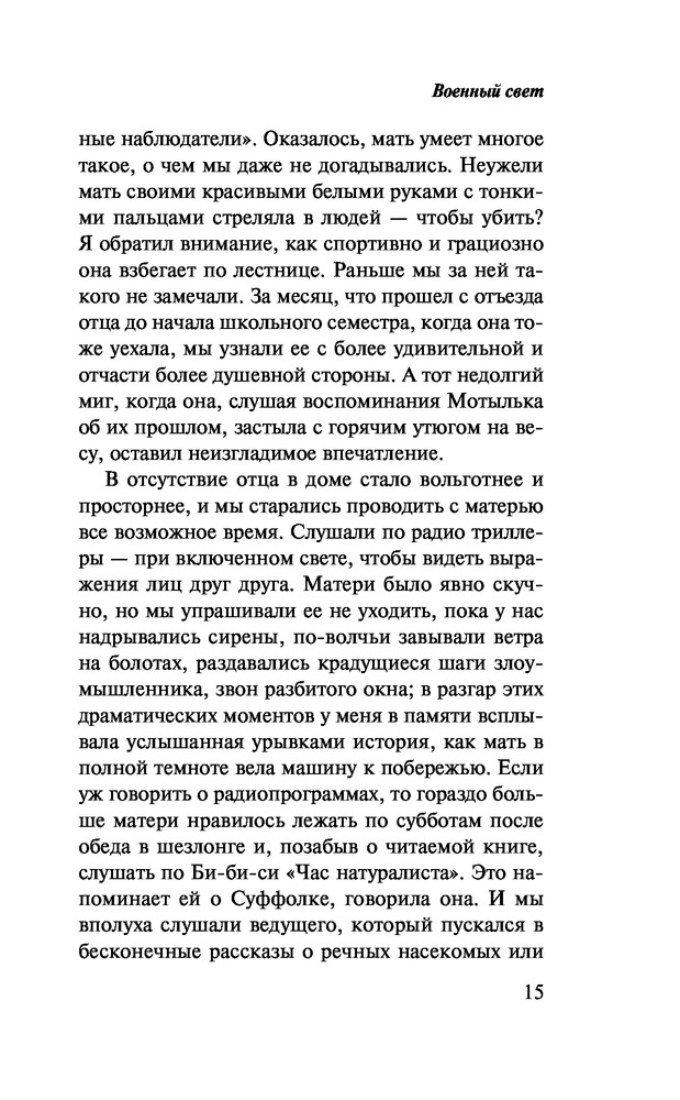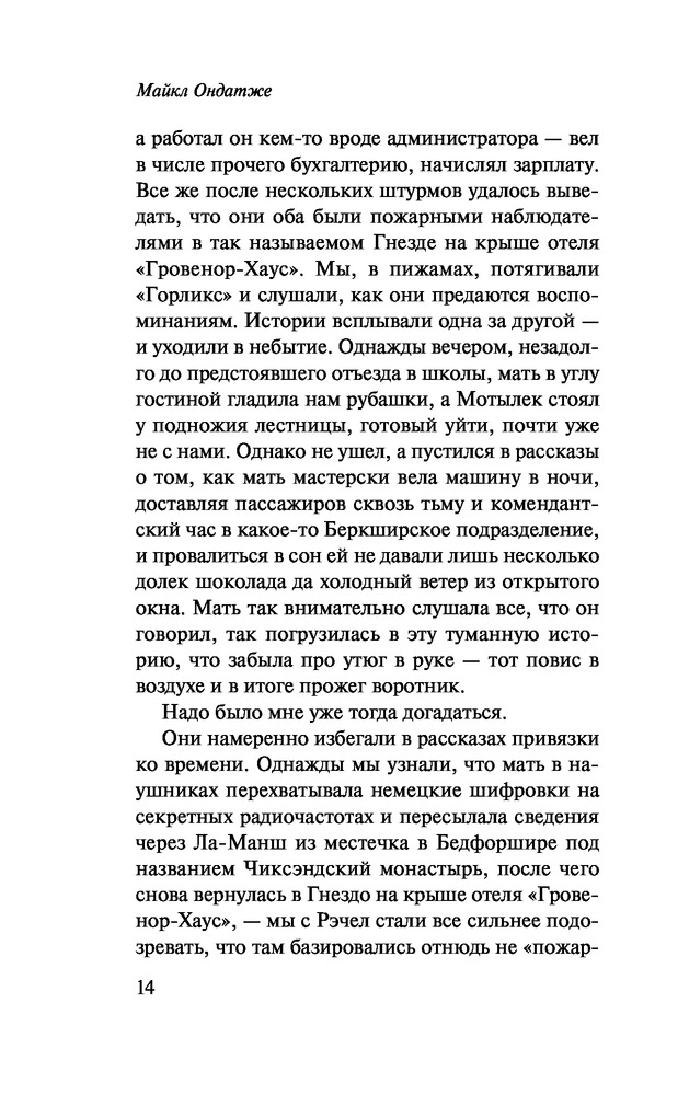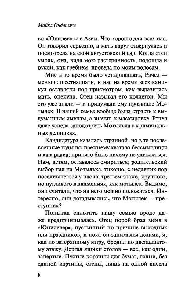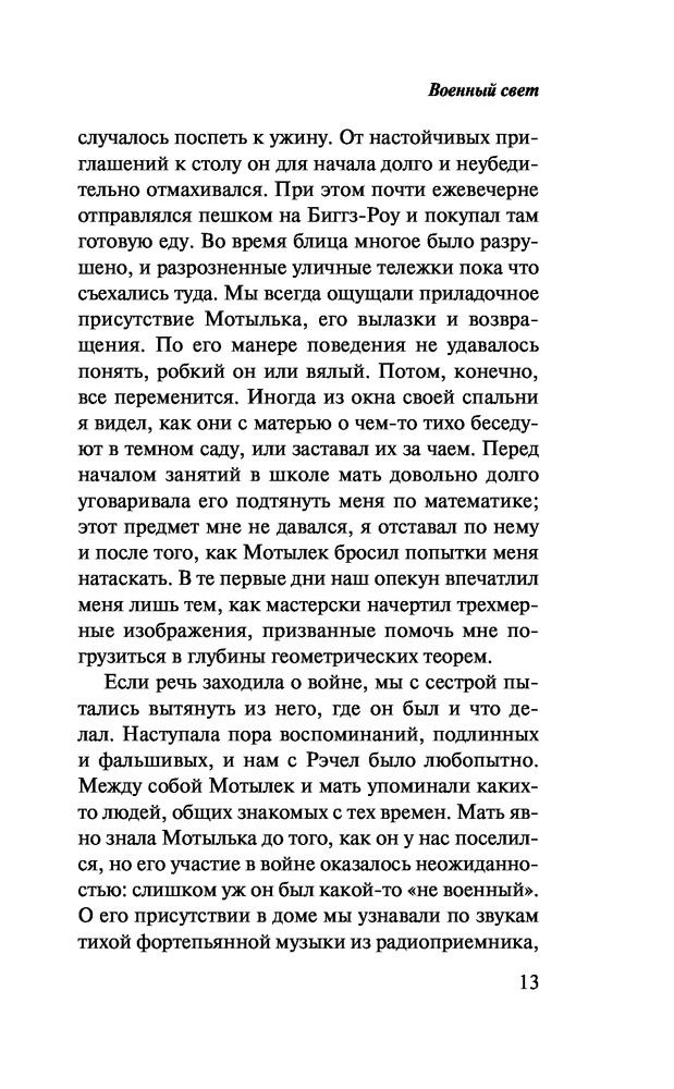 Военный светВ данный момент этот товар отсутствует в продаже. Возможно, у нас найдется аналогичный или похожий товар здесь. Серия: Литературные хиты: Коллекция 1945. Лондон до сих пор не может оправиться от войны. Родители оставили 14-летнего Натаниела и его старшую сестру Рэчел на попечение загадочному человеку по прозвищу Мотылек. Они подозревают, что он преступник, и все больше в этом убеждаются, узнавая его эксцентричных друзей: мужчин и женщин, которых что-то связывает в прошлом и которые теперь хотят опекать юных героев. Но кто они на самом деле? Почему они хотят заботиться о Натаниеле? И как брат и сестра должны себя вести, когда через несколько месяцев их мать возвращается без отца и ничего не объясняет? |