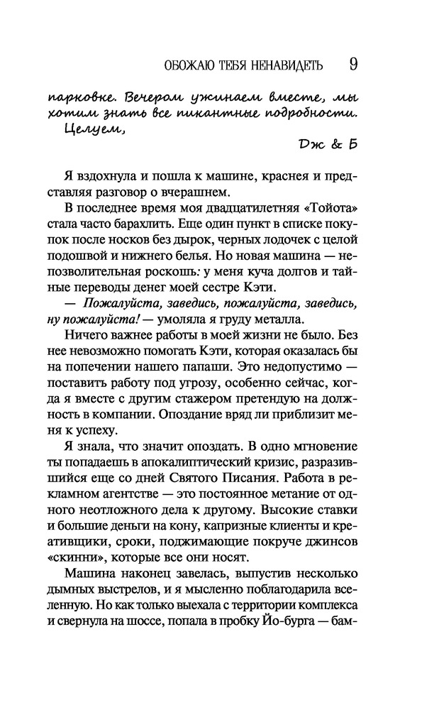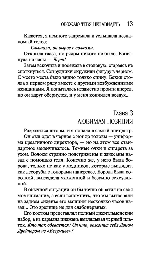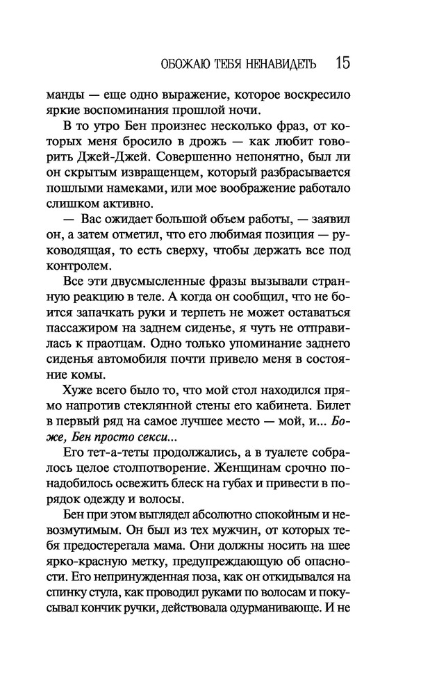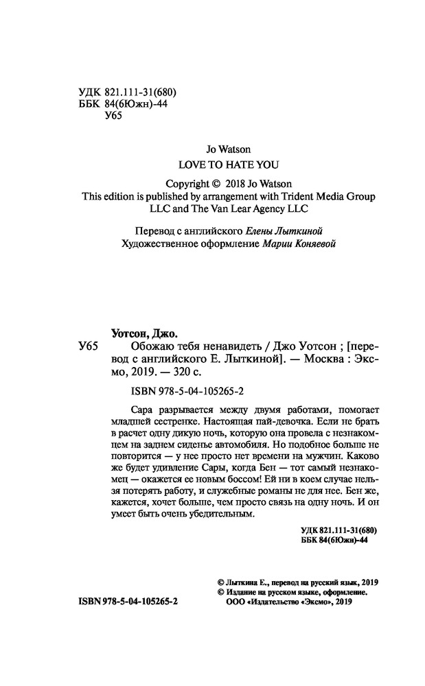 Обожаю тебя ненавидетьВ данный момент этот товар отсутствует в продаже. Возможно, у нас найдется аналогичный или похожий товар здесь. Серия: Хит Wattpad. Люби, путешествуй, радуйся Сара разрывается между двумя работами, помогает младшей сестренке. Настоящая пай-девочка. Если не брать в расчет одну дикую ночь, которую она провела с незнакомцем на заднем сиденье автомобиля. Но подобное больше не повторится — у нее просто нет времени на мужчин. Каково же будет удивление Сары, когда Бен — тот самый незнакомец — окажется ее новым боссом! Ей ни в коем случае нельзя потерять работу, и служебные романы не для нее. Бен же, кажется, хочет больше, чем просто связь на одну ночь. И он умеет быть очень убедительным. |