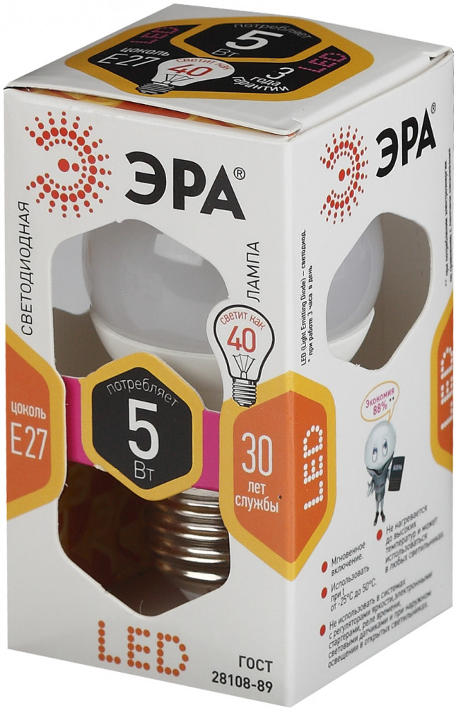 Лампа светодиодная Эра Е27 5 Вт Описанию соответствует. Брал для настольной лампы. Понравилась. Не пульсирует , свет ровный теплый, глаза не устают. Рекомендую Спасибо Flip.kz за быструю доставку , высокое качество товара и скидку !