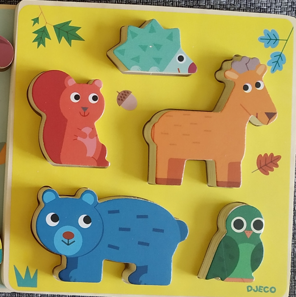 💳 Оплатить за товар можно при получении 🇰🇿 Есть бесплатная доставка по Казахстану от 1 дня 🎁 Копите бонусы с каждой покупки Деревянная рамка-вкладыш «В лесу» — это очаровательная головоломка, которая состоит из 5 частей и идеально подходит для самых маленьких. На деревянной основе есть отверстия разного размера, которые малыш должен заполнить фигурками лесных животных. |