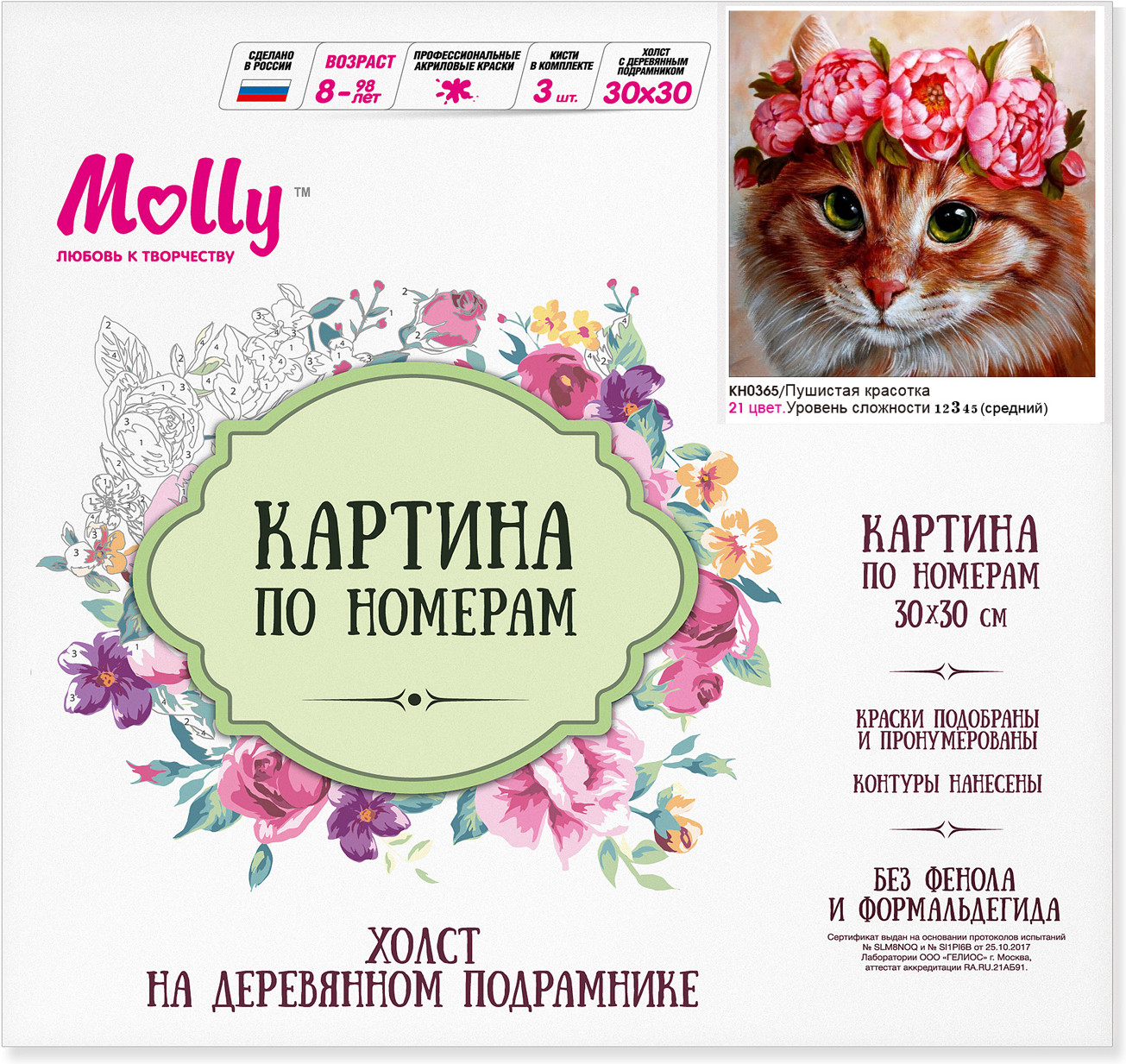 Molly Картина по номерам «Пушистая красотка»В данный момент этот товар отсутствует в продаже. Возможно, у нас найдется аналогичный или похожий товар здесь. Взяв в руки кисти и краски и внимательно изучив холст с нанесенной схемой рисунка, можно нарисовать портрет пушистой кошки с венком из розовых цветов. Средний уровнь сложности. |