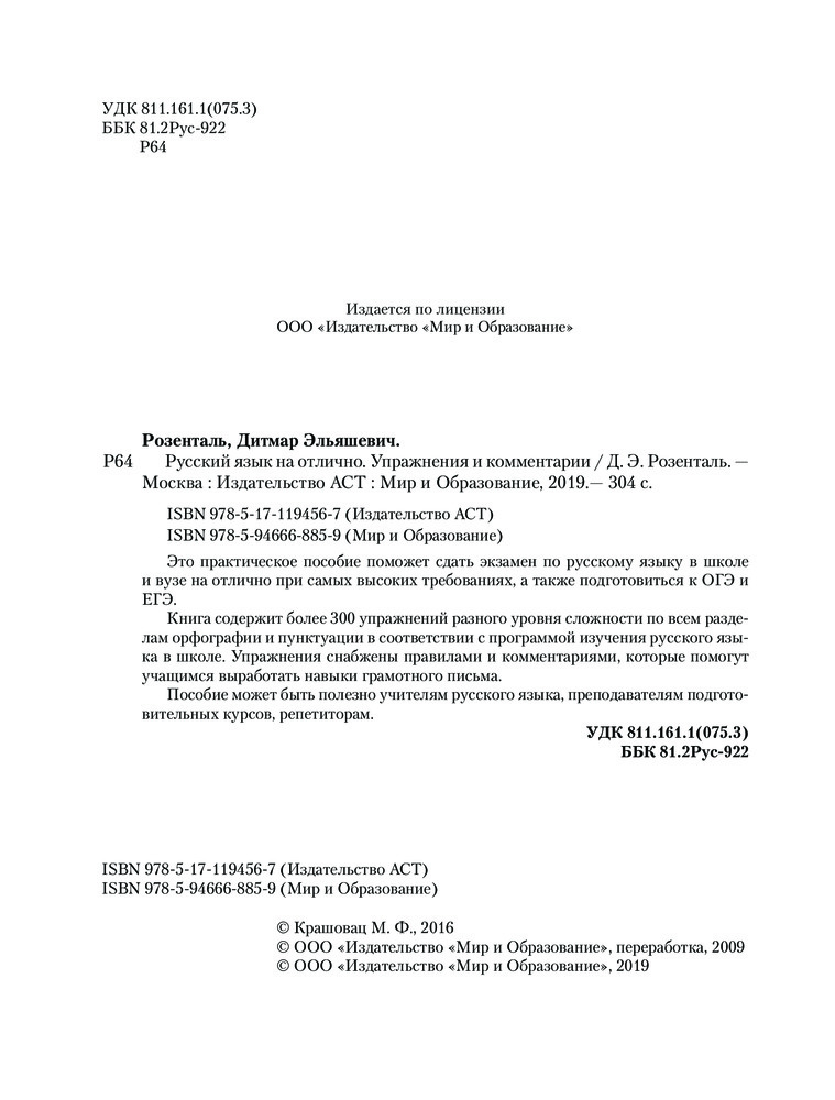 💳 Оплатить за товар можно при получении 🇰🇿 Есть бесплатная доставка по Казахстану от 1 дня 🎁 Копите бонусы с каждой покупки Серия: Розенталь. Русский язык на отлично Это практическое пособие поможет сдать экзамен по русскому языку в школе и вузе на отлично при самых высоких требованиях, а также подготовиться к ОГЭ и ЕГЭ. В книге представлены все разделы современного русского языка в соответствии со школьной программой. Помимо богатого теоретического материала она содержит около 450 упражнений для закрепления усвоенных знаний. Пособие также может быть полезно учителям русского языка, преподавателям подготовительных курсов, репетиторам. |
