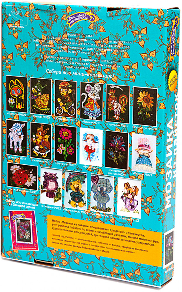💳 Оплатить за товар можно при получении 🇰🇿 Есть бесплатная доставка по Казахстану 🎁 Копите бонусы с каждой покупки Мозаика из паейток — новое, позитивное занятие для проведения семейного досуга. Ваш ребенок самостоятельно или вместе с вами соберет прекрасную картину, которая станет великолепным подарком близким и друзьям или стильным интерьерным украшением, созданным юным творцом. В процессе сборки у ребенка развивается мелкая моторика, усидчивость, внимание, зрительная память, чувство прекрасного. |