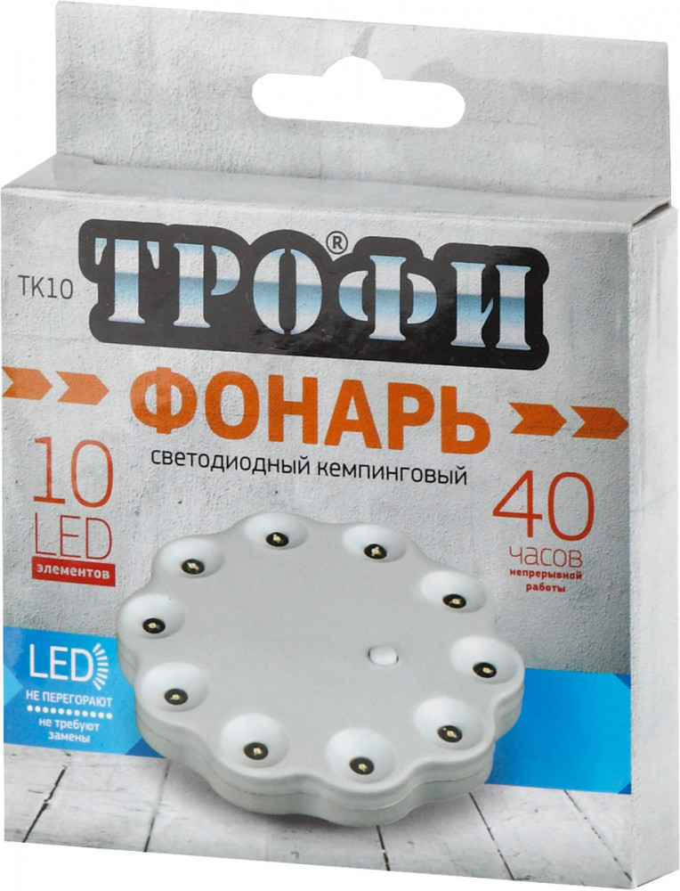 ТРОФИ Фонарь кемпинговый Трофи TK10В данный момент этот товар отсутствует в продаже. Возможно, у нас найдется аналогичный или похожий товар здесь. Трофи TK10 — кемпинговый LED-фонарь с несколькими типами креплений на разные поверхности. Можно использовать в качестве походного светильника или походной люстры. Десять ярких светодиодов эргономично расположены по кругу. Корпус изготовлен из ударопрочных материалов. Это многофункциональный кемпинговый фонарь, способный сделать максимально комфортной вашу жизнь на привале или во время отдыха на природе. |
