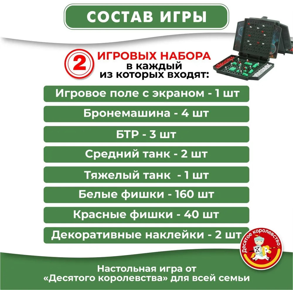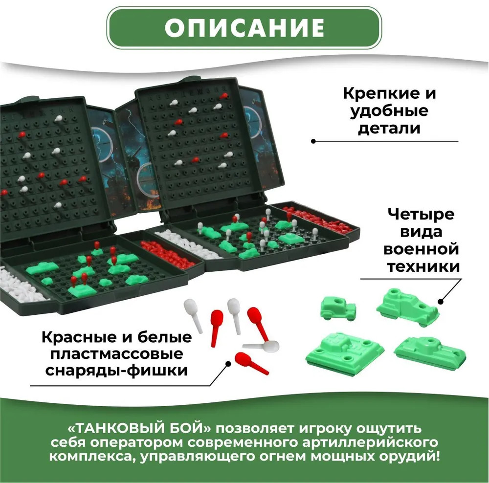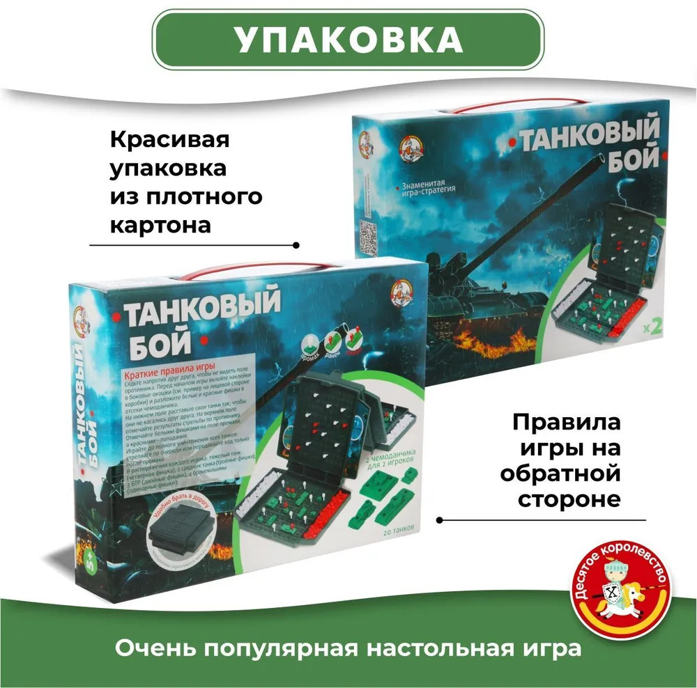 💳 Оплатить за товар можно при получении 🇰🇿 Есть бесплатная доставка по Казахстану от 1 дня 🎁 Копите бонусы с каждой покупки Для поклонников игры в морской бой — новая интерпретация классической игры! Устройте эпичное сражение на танках и победите соперника, став главным стратегом в бою! |
