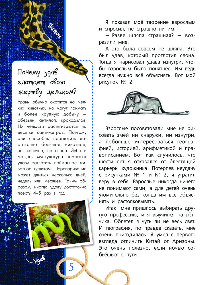 💳 Оплатить за товар можно при получении 🇰🇿 Есть бесплатная доставка по Казахстану от 1 дня 🎁 Копите бонусы с каждой покупки Серия: Детская книга с вопросами и ответами для почемучек Сказка о Маленьком принце самого знаменитого французского летчика, получившего орден Почетного Легиона, и писателя, удостоенного литературных премий, — Антуана де Сент-Экзюпери- это история о самом главном, самом ценном, самом сокровенном в жизни. О красоте, дружбе, любви, верности.... Это произведение, хотя и называется сказкой, обращено не только к детям, ко всем людям. В нашем издании на каждой странице можно еще прочитать комментарии, которые помогут узнать историю создания, важные моменты жизни Сент-Экзюпери, глубже понять прекрасную философскую притчу. Для среднего школьного возраста |