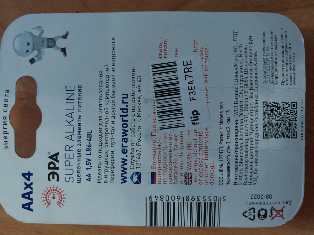 💳 Оплатить за товар можно при получении 🇰🇿 Есть бесплатная доставка по Казахстану от 1 дня 🎁 Копите бонусы с каждой покупки Серия: Energy Щелочные батарейки Эра «Energy» оптимально подходят для повседневного питания множества современных бытовых приборов: электронных игрушек, фонарей, беспроводной компьютерной периферии и многого другого. Не содержат кадмия и ртути. Батарейки созданы для устройств со средним и высоким потреблением энергии. Работают в 10 раз дольше, чем обычные солевые элементы питания. В комплекте — 4 батарейки. |