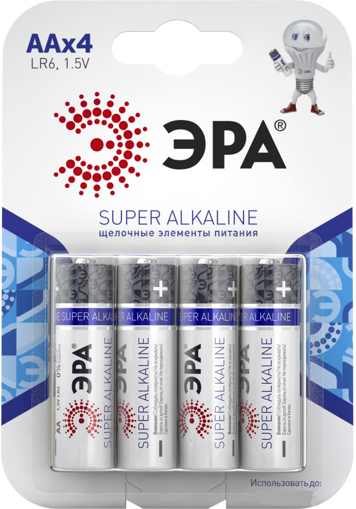 Эра Набор батареек щелочных AA+40 долговечность
