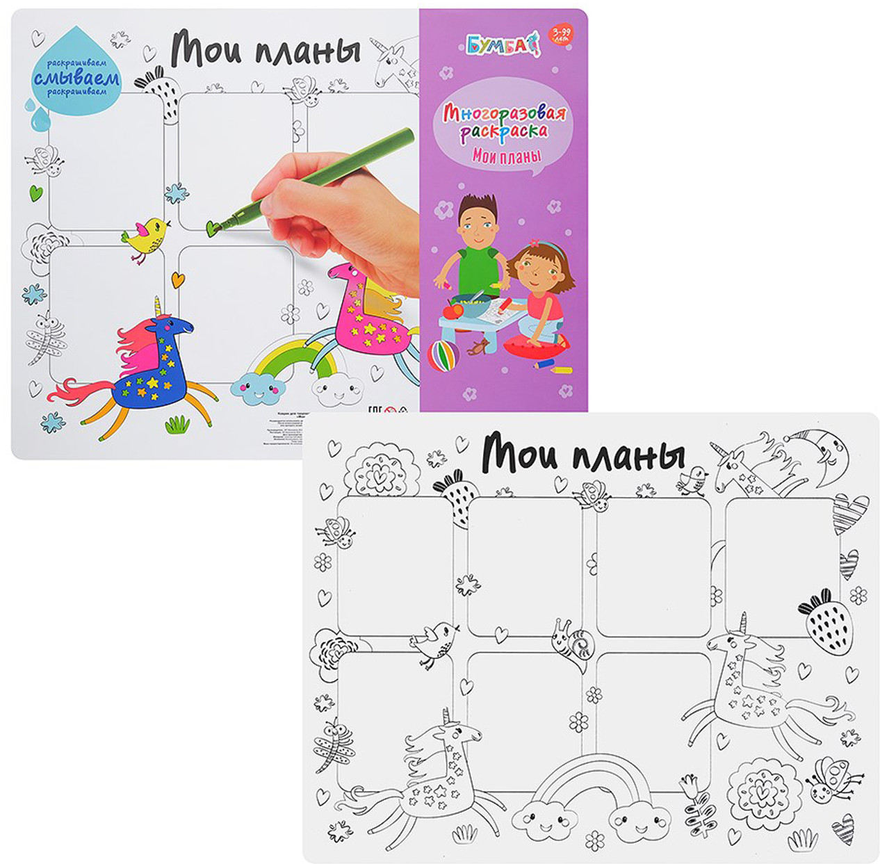 Bumbaram Раскраска многоразовая «Мои планы. Единороги»В данный момент этот товар отсутствует в продаже. Возможно, у нас найдется аналогичный или похожий товар здесь. Коврик для творчества поможет выполнять уроки вовремя и везде успевать. В ячейки следует внести необходимую информацию, а веселых единорогов разукрасить. Такое расписание будет не только помогать организовать день, но радовать глаз. Благодаря покрытию коврик легко чистится влажной губкой, поэтому вносить любые изменения просто. |