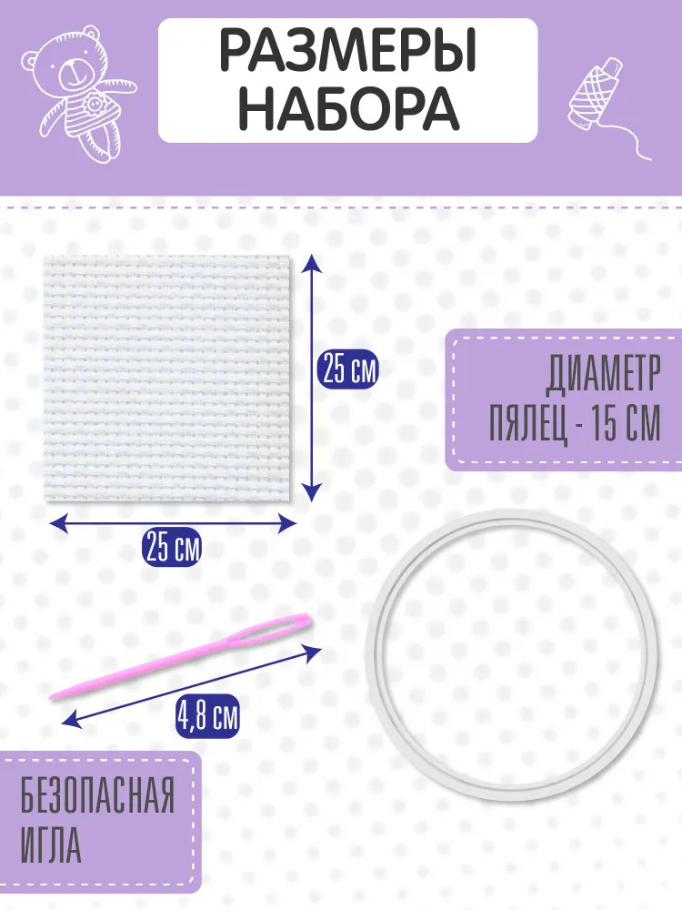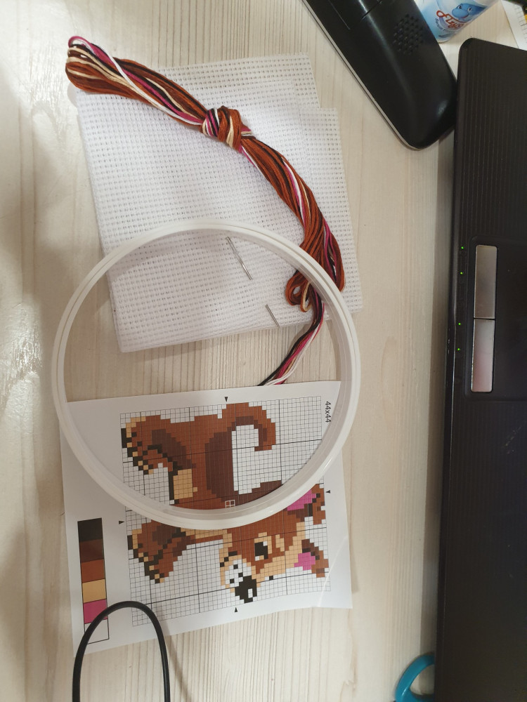 Набор хорошо подойдёт для тех, кто хочет научиться вышивать. В наборе пластиковые пальца, канва, нитки, игла, схема. Игла большая , что может быть удобно для детей. Не хватило нити рыжего цвета, хотя расход был экономичным.