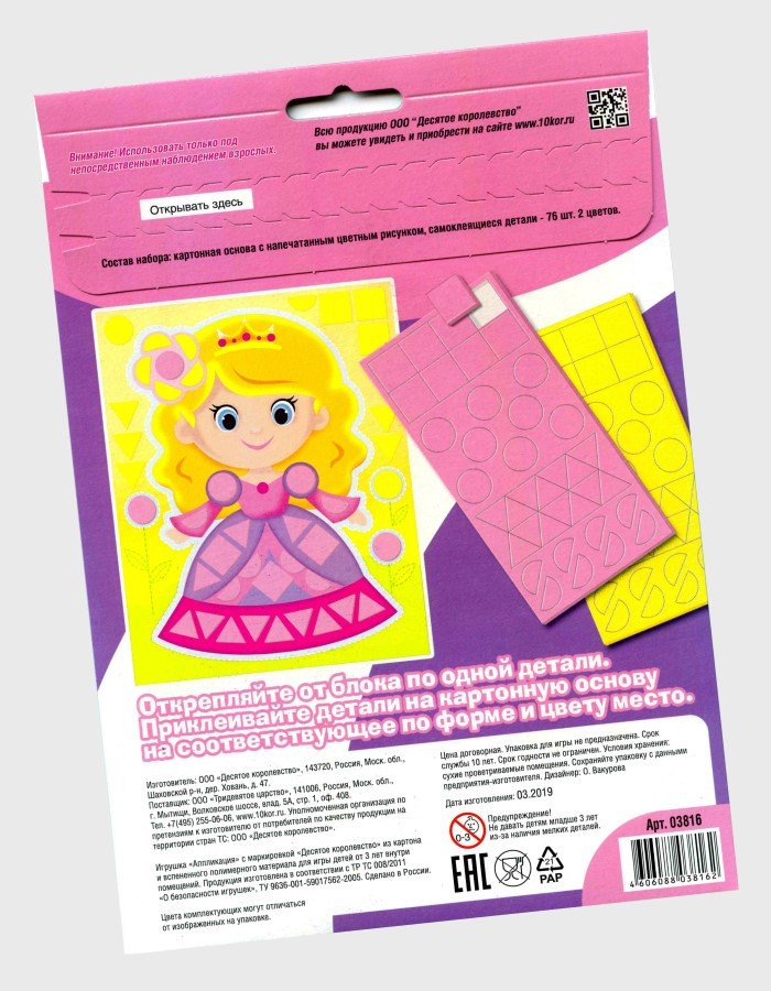 💳 Оплатить за товар можно при получении 🇰🇿 Есть бесплатная доставка по Казахстану от 1 дня 🎁 Копите бонусы с каждой покупки Создайте яркую картинку без особых усилий с аппликацией «Принцесса»! Открепляйте от блока по одной детали и приклеивайте их на картонную основу на соответствующее по форме и цвету место. Работа с аппликацией тренирует мелкую моторику и щипковый захват, логическое мышление и творческие способности ребенка, а также знакомит его с основными цветами и формами. |