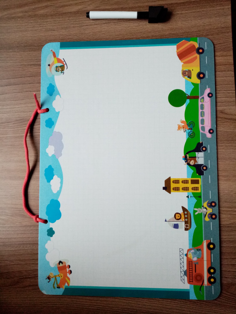 Планшет совершенно обычный, подвешивается на шнурок. Маркер пишет ярко и четко, стирается легко. Ребенок 5 лет рисует с радостью, даже обычными фломастерами.