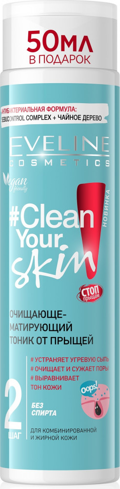 Eveline Cosmetics Тоник для лица очищающе-матирующий от прыщей-20% +53 освежает помогает рекомендую отличный