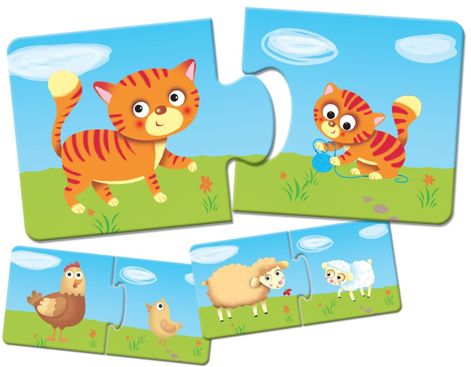 Яркие пазлы из двух элементов для самых маленьких. Ребенку предлагается подобрать каждому детенышу его родителя. В наборе 16 пар первых животных, с которыми знакомится малыш. Игра развивает логическое мышление и знания об окружающем мире.