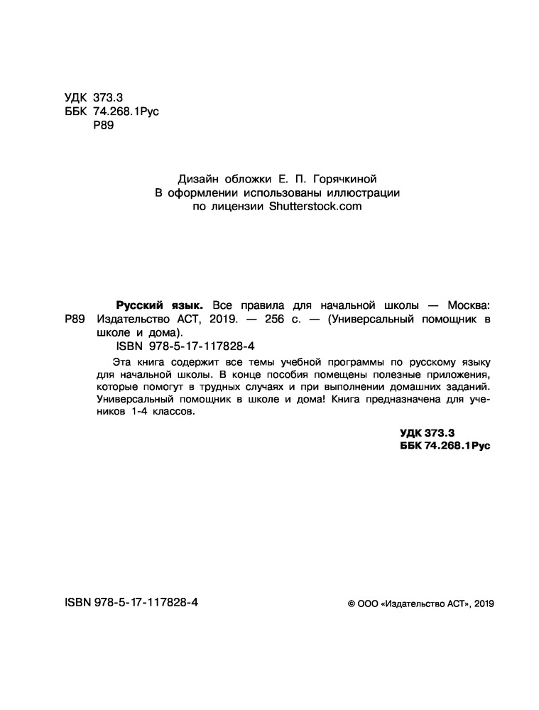 Серия: Универсальный помощник в школе и дома Эта книга содержит все темы учебной программы по русскому языку для начальной школы. В конце пособия помещены полезные приложения, которые помогут в трудных случаях и при выполнении домашних заданий. Универсальный помощник в школе и дома! Книга предназначена для учеников 1-4 классов. |