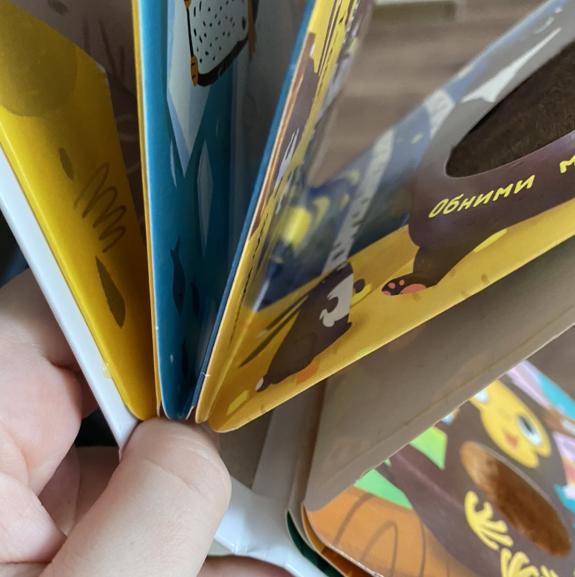Идея книжки отличная, но исполнение не очень. Книга пришла и при открытии сразу же порвалась внутри. Это я ещё ребёнку не давала. Шерсть, которая внутри, не очень надежная, ребёнок начал сразу рвать и она отрывалась.