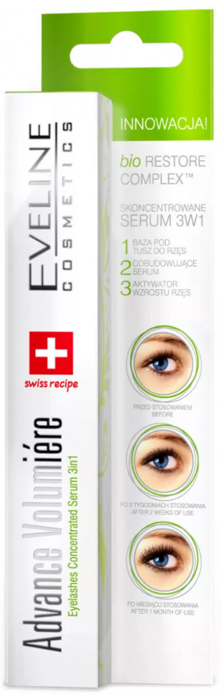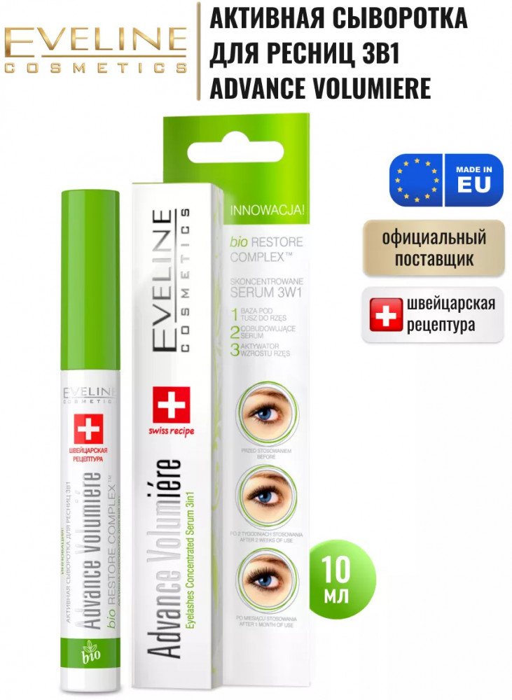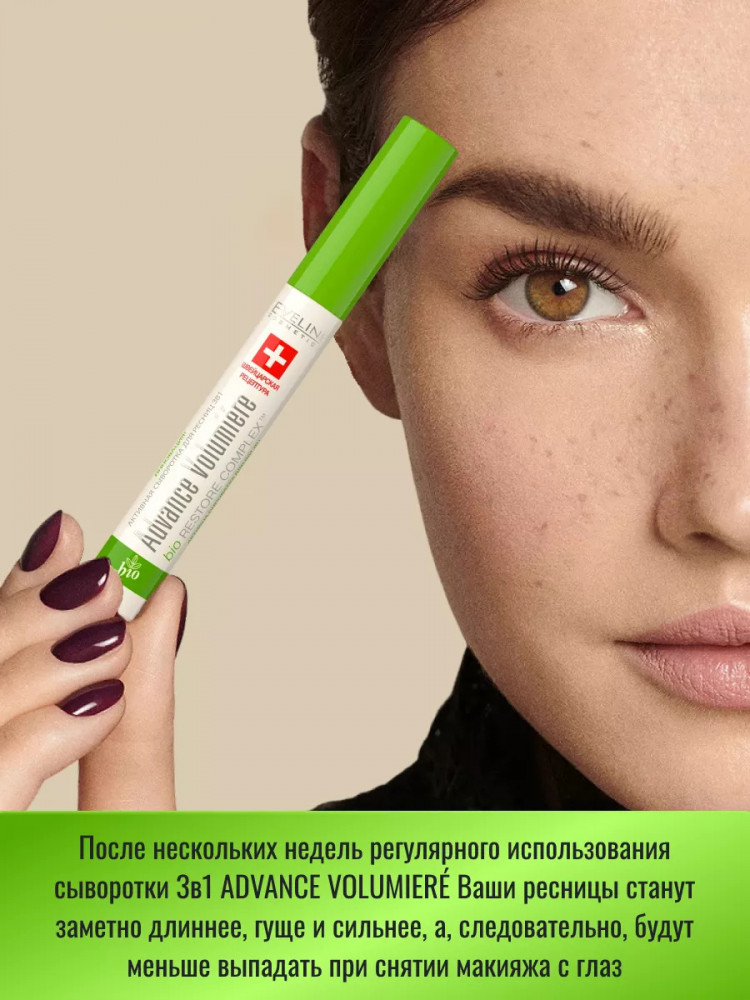 Eveline Cosmetics Сыворотка для ресниц 3 в 1 «Advance volumiеre»-20% +68 база под тушь удлиняет придаёт объём укрепляет ресницы не растёт