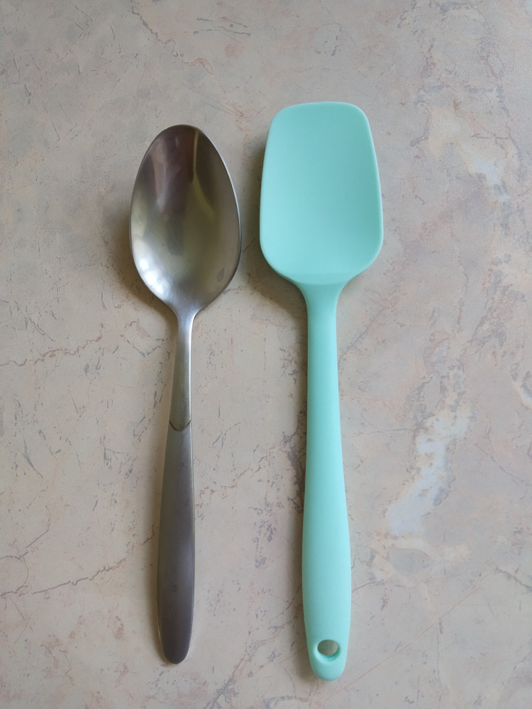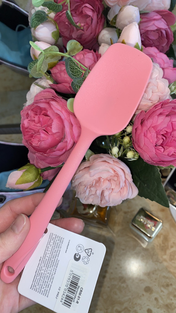 Лопатка очень мягкая. Обращаться с ней нужно аккуратно. При сгибании вот-вот проткнется силикон внутренней железкой, потому что железка слишком тонкая. У меня аналогичная лопатка другой фирмы бОльшего размера, там вместо железки внутри твердый пластик, он заметно шире и не торчит при сгибании, явно надежнее. Так вот ту я использую при замесе творожного теста, разминая комочки. А с этой так нельзя, прорвется силикон. Она, видимо, для более нежных субстанций, как в названии, Cream (сливки, крем). Брала две разного цвета, мятная не мятного цвета, а, скорее, бледно-голубовато-бирюзового (светлее, чем на фото в описании и отзывах).