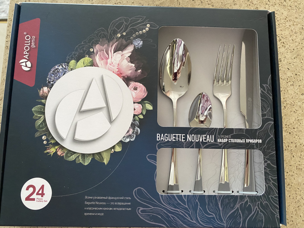 Прекрасный набор, очень удобные приборы, эстетичны, прямо как хотелось, очень довольна.