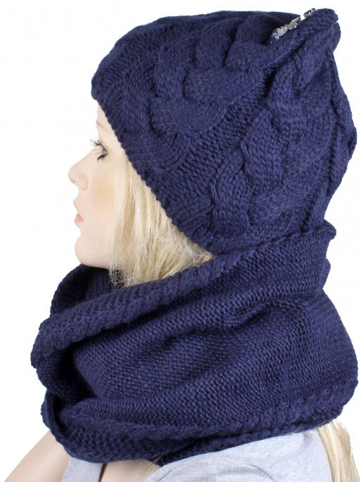 Изысканный и стильный женский комплект шапка и широкий шарф-хомут — снуд. Удобный и практичный комплект, который украсит и дополнит Ваш образ. Шарф-хомут можно носить, как отдельный аксессуар под пальто одевая его на шею или на голову.