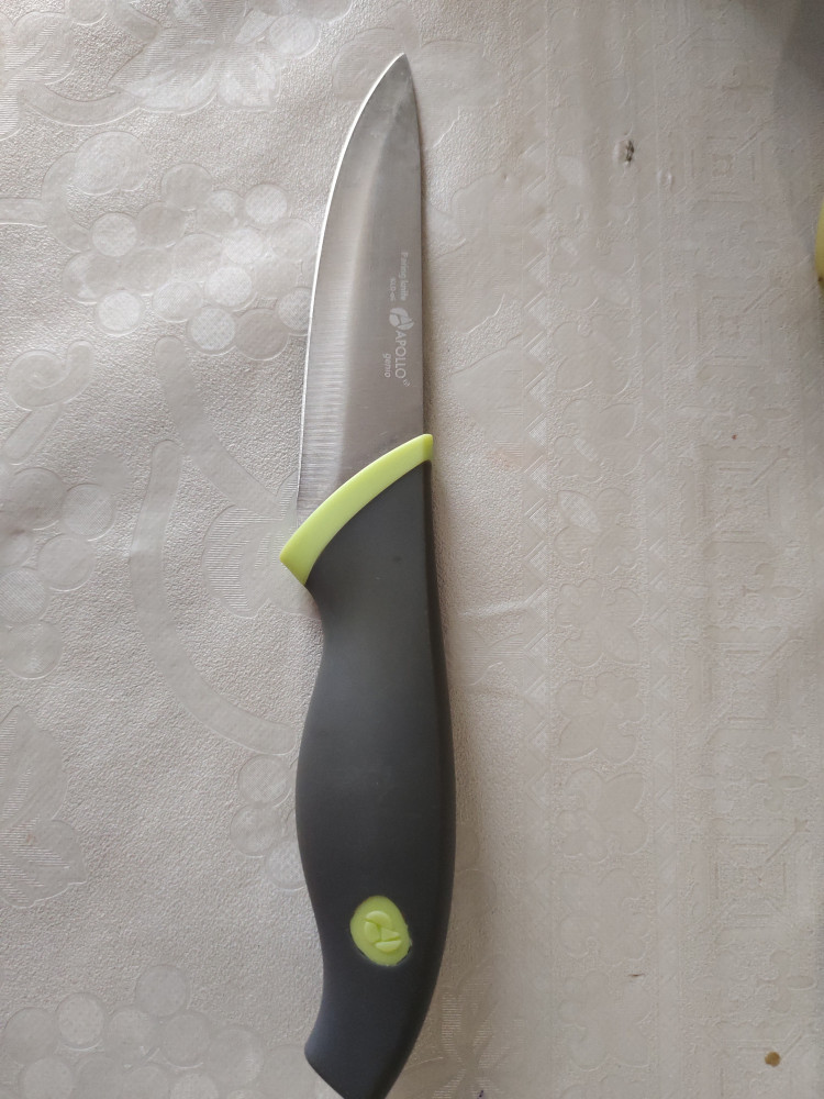 удобный и острый нож. подходит для чистки и нарезки овощей. У меня руки маленькие, поэтому ручка для меня чуть широковато, но вполне удобный. Ручка прорезиненная, не скользит, нож острый. Рекомендую к покупке